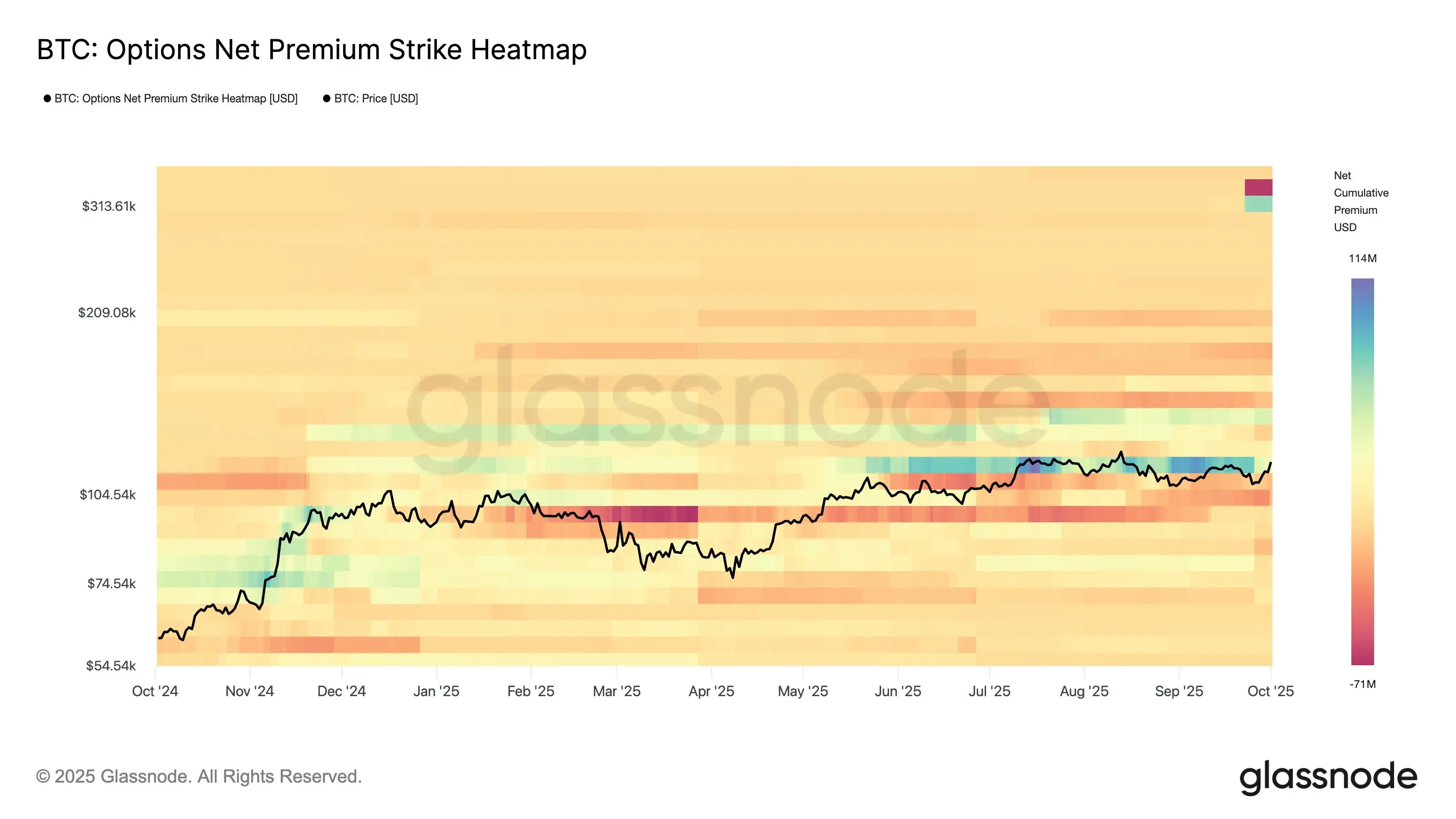 بازار گزینههای بیتکوین در حال حاضر تمرکز قابل توجهی بر روی محدوده قیمت ۱۰۰ هزار تا ۱۲۲ هزار دلار دارد، هرچند برخی معاملهگران با دیدگاه بلندمدت، در حال شرطبندیهای سنگین تا سطح ۳۰۰ هزار دلار هستند. بر اساس دادههای شرکت تحلیلگر گلسنود (Glassnode)، در روز پنجشنبه، دوم مهرماه، معاملات آپشن بیتکوین عمدتاً در نزدیکی قیمت فعلی ۱۲۰ هزار دلار متمرکز شده بود و نشاندهنده تمایل بازار به حفظ موقعیتهای محافظتی در این ناحیه است، در حالی که برخی فعالان بازار به دنبال کسب سودهای بزرگ از حرکتهای صعودی هستند.