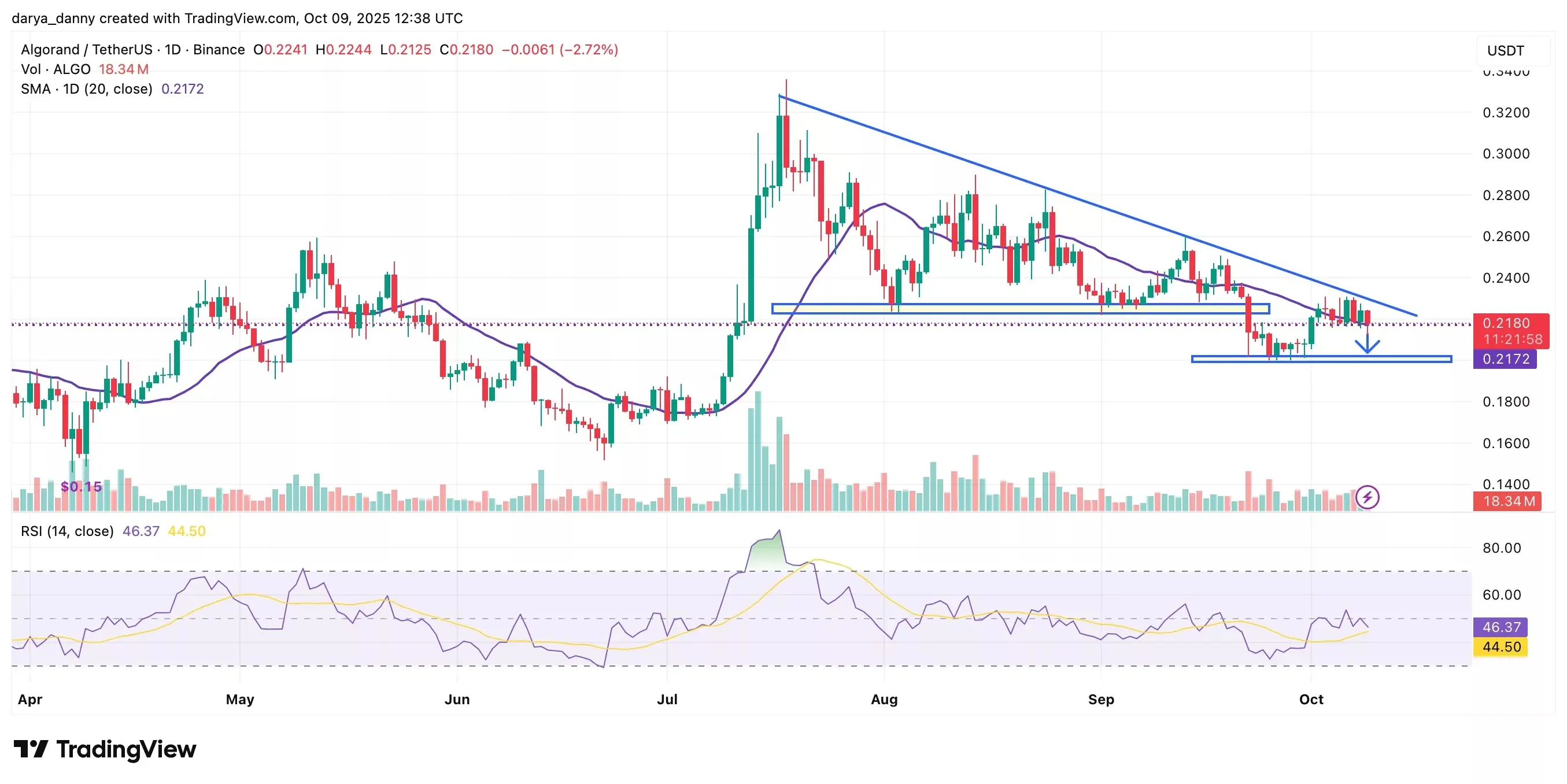 تحلیل قیمت الگوراند ALGO نشان میدهد که عبور از میانگین متحرک ۲۰ هفتهای ممکن است روند نزولی را معکوس و قیمت را به سمت ۱ دلار هدایت کند.