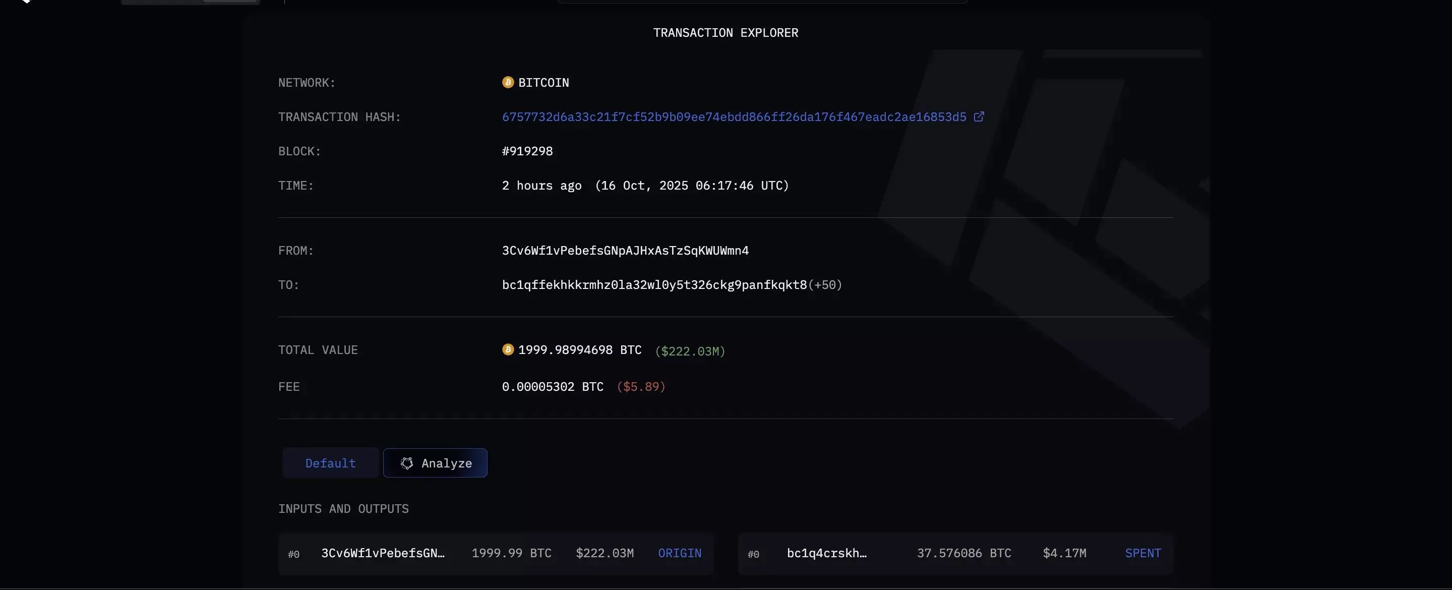 بر اساس دادههای بلاکچین از شرکت آرکهام اینتلجنس (Arkham Intelligence)، این نهنگ حدود ۲۰۰۰ بیتکوین، معادل حدود ۲۲۲ میلیون دلار بر اساس قیمتهای کنونی، را به چندین کیفپول جدید منتقل کرده است. این انتقال در قالب توزیع در ۵۱ آدرس جدید انجام شده است. در این میان، ۵۰ کیفپول هر کدام حدود ۳۷.۵۷۶ بیتکوین، معادل حدود ۴.۲ میلیون دلار، دریافت کردهاند، در حالی که یک کیفپول دیگر ۱۲۱.۱۸ بیتکوین، معادل حدود ۱۳.۴ میلیون دلار، دریافت کرده است.