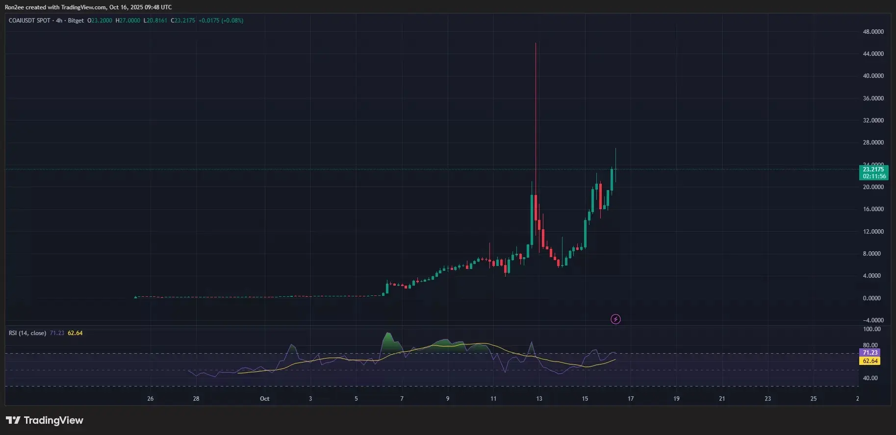 در طول هفت روز گذشته، فعالیتهای معاملاتی COAI بسیار چشمگیر بوده و نشاندهنده تقاضای قوی در بازار است. این موضوع سبب شد ارزش بازار این رمزارز از حدود یک میلیارد دلار در تاریخ ۹ اکتبر به بیش از ۴.۵ میلیارد دلار در لحظه نگارش مقاله برسد.
