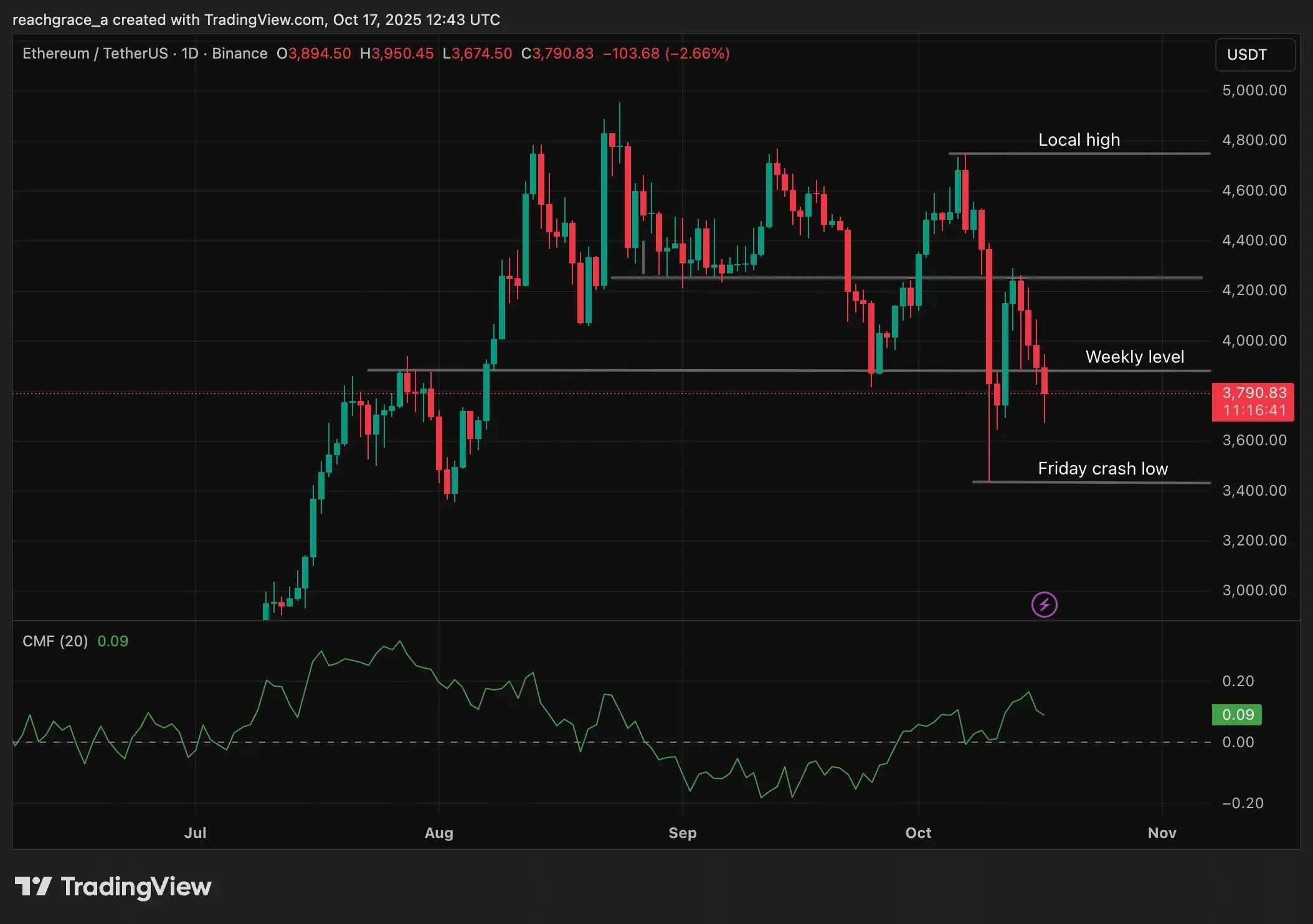 تحلیل بازار اتریوم: کاهش شدید قیمت، آینده مبهم و احتمال اصلاح عمیقتر در نزدیکی سطح ۳،۵۰۰ دلار