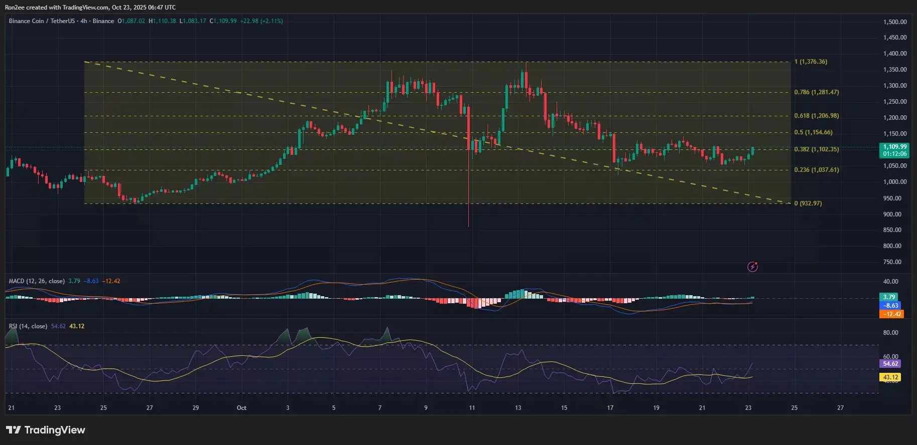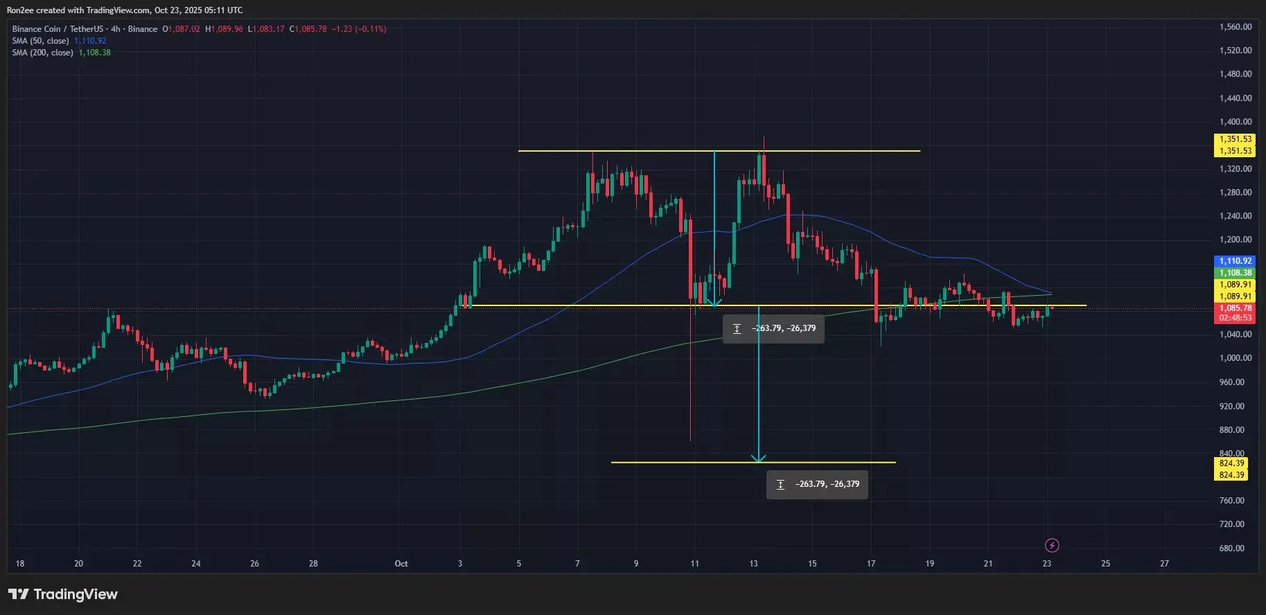 قیمت بایننس کوین (BNB) تأیید کرد که الگوی دو قله نزولی (double top) در نمودار آن شکل گرفته است، در حالی که خبرهای مربوط به لیست شدن در صرافیهای بزرگ توجه بازار را به خود جلب کرده است. این رمزارز در حال حاضر در محدوده ۱۰۸۷ دلار معامله میشود و طی هفت روز گذشته حدود ۸ درصد کاهش یافته است، در حالی که نسبت به اوج تاریخی خود در ۱۳ اکتبر که ۱۳۶۹.۹۹ دلار ثبت شده بود، حدود ۲۰.۷ درصد افت داشته است.