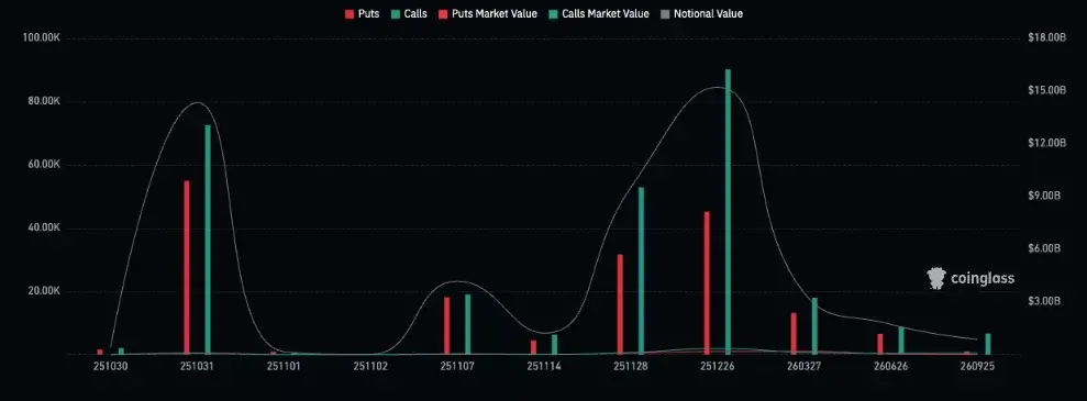 در مورد بیتکوین، حدود ۷۲ هزار و ۷۱۶ قرارداد اختیار خرید (call) و ۵۴ هزار و ۹۴۵ قرارداد اختیار فروش (پوت) منقضی میشوند که ارزش مجموع آنها به حدود ۱۴.۴ میلیارد دلار میرسد. همزمان، قراردادهای اختیار معامله اتریوم به ارزش تقریبی ۲.۶ میلیارد دلار نیز در همان تاریخ منقضی خواهند شد. این حجم عظیم از قراردادهای منقضیشونده میتواند منجر به نوسانات قابلتوجه در قیمت این دو ارز دیجیتال شود و فعالان بازار را در وضعیت احتیاط قرار دهد.
