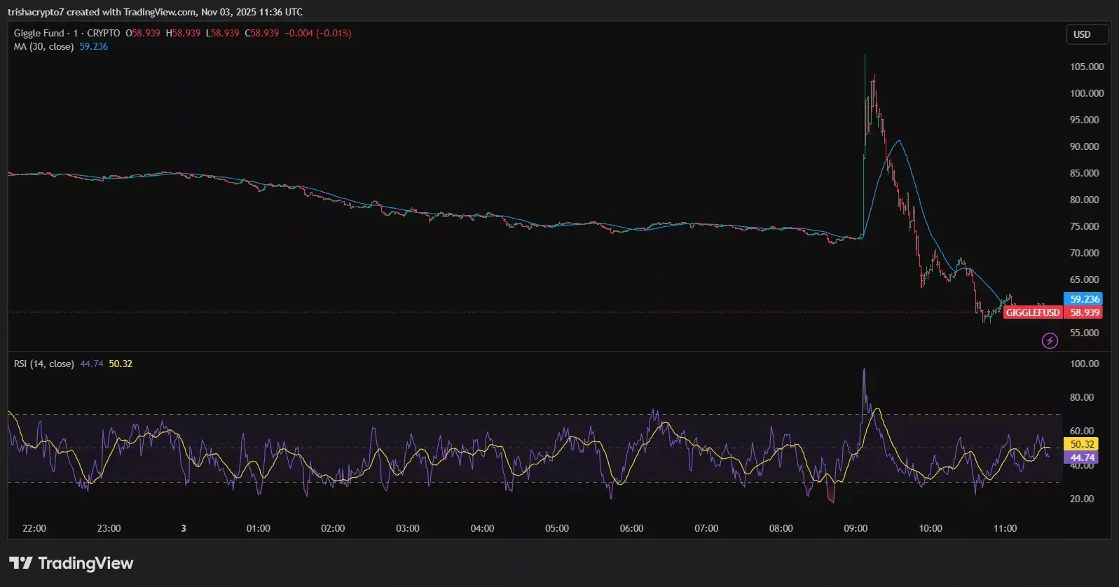پس از انتشار این خبر، ارزش GIGGLE موقتاً تا ۱۱۰ دلار افزایش یافت، اما سریعاً به سطح قبلی بازگشت. با این حال، حجم معاملات این توکن پس از اعلام بایننس نسبت به روز قبل، حدود ۱۵۰ درصد رشد نشان داد.