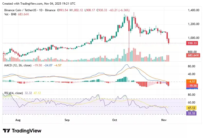 کاهش شدید قیمت BNB زیر ۹۰۰ دلار در پی روند فروش بازار رمزارزها، کاهش بیتکوین و اتریوم، هشدارهای فنی و تحلیلهای بازار در کریپتو نیوز
