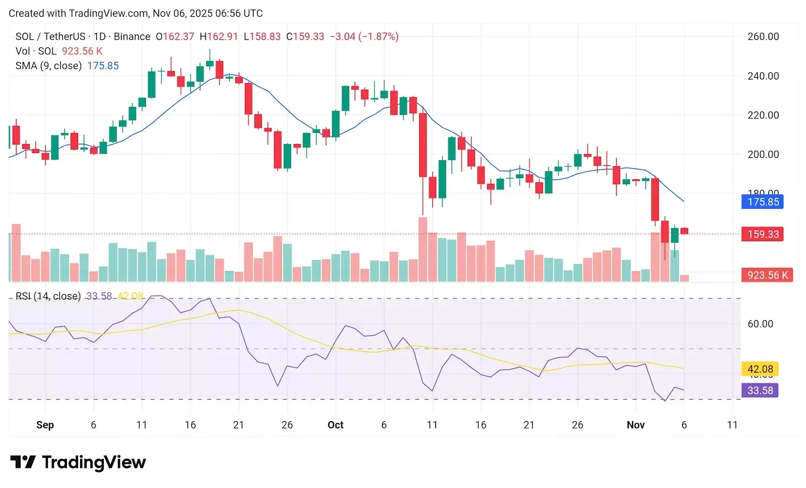 قیمت سولانا (Solana) در حال حاضر نشانههایی از بازیابی اولیه پس از کاهشهای اخیر نشان میدهد، که این روند با ورودهای پیوسته به صندوقهای قابل معامله در بورس (ETF) مرتبط است. دادههای جدید حاکی از آن است که قیمت این رمزارز پس از کاهش به حدود ۱۵۰ دلار، در حال حاضر در حال جمعآوری فشار خرید و حرکت به سمت عبور از سطح ۱۶۰ دلار است. در نمودار روزانه، سولانا با افزایش ۱.۱۸ درصدی مواجه شده است که نشاندهنده تغییر روند به سمت حرکت مثبت است.