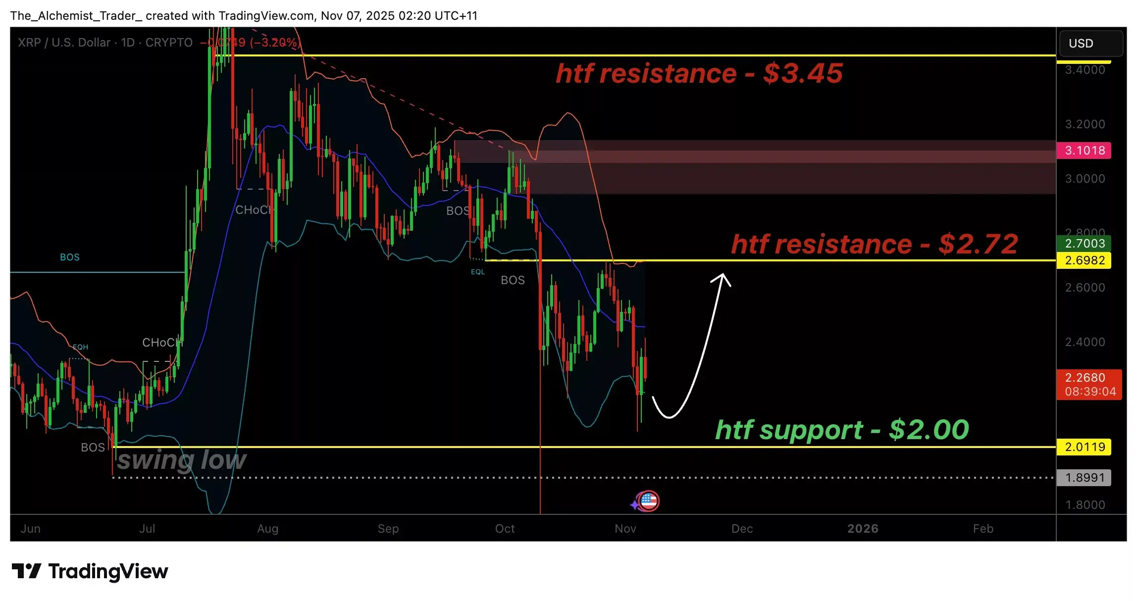 در حال حاضر، XRP در حال آزمایش مجدد سطح حمایتی ۲ دلار است که در تایمفریمهای بزرگ به عنوان یک سطح حیاتی شناخته میشود. علیرغم فشار فروش اخیر، تقاضای اولیه در اطراف این سطح روانی دیده میشود، موضوعی که این پرسش را مطرح میکند که آیا کف قیمتی در کوتاهمدت شکل میگیرد یا خیر.