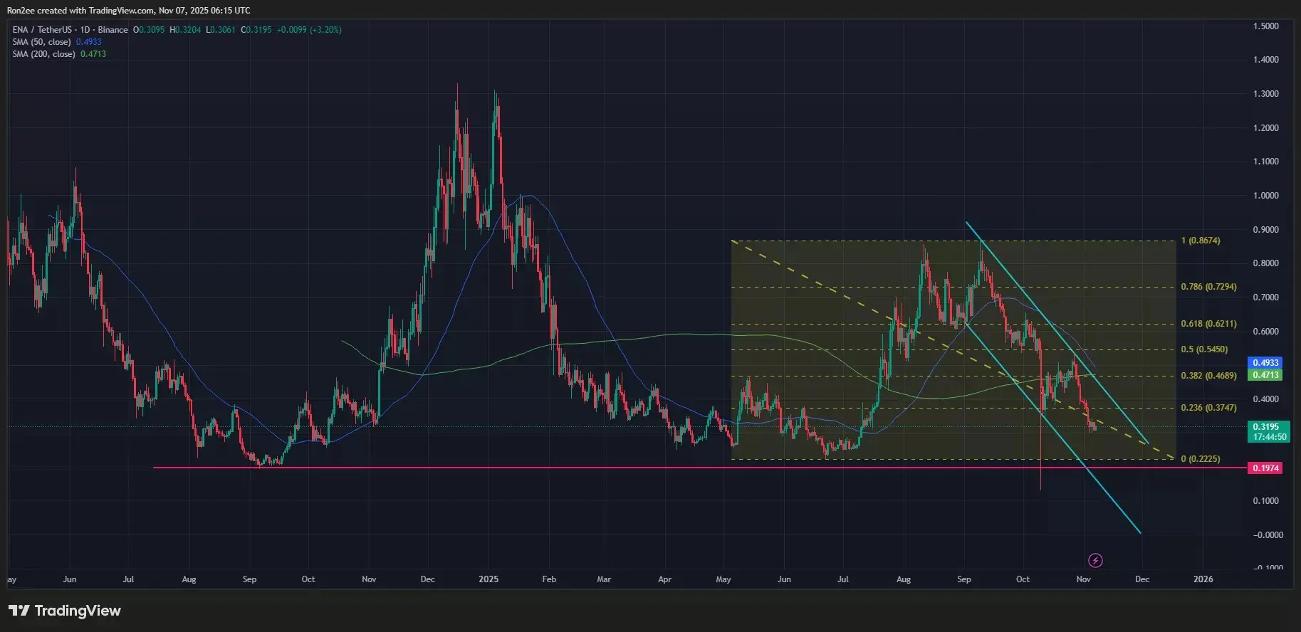 قیمت اتینا (Ethena) از تاریخ ۹ سپتامبر روند کاهشی خود را ادامه داده است و در حال حاضر در قالب یک کانال همجهت نزولی در نوسان است. در تحلیلهای فنی، این نوع الگو به عنوان کانال همجهت نزولی شناخته میشود، جایی که قیمت بین دو خط روند نزولی قرار میگیرد و نشاندهنده فشار فروش مداوم و روند غالب نزولی بازار است.