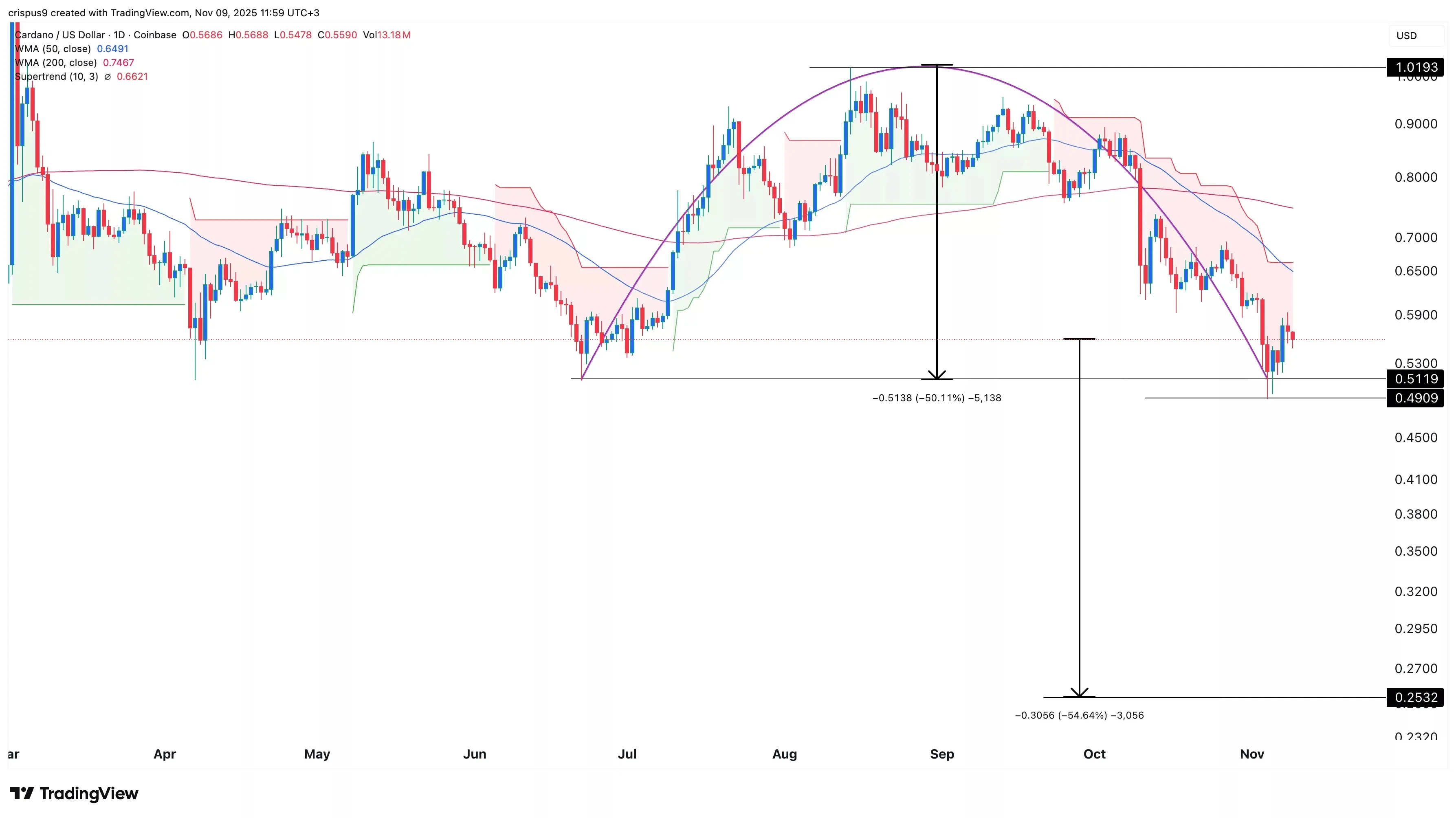 آیا کاردانو (ADA) ۵۵ درصد کاهش مییابد؟ تحلیل روند