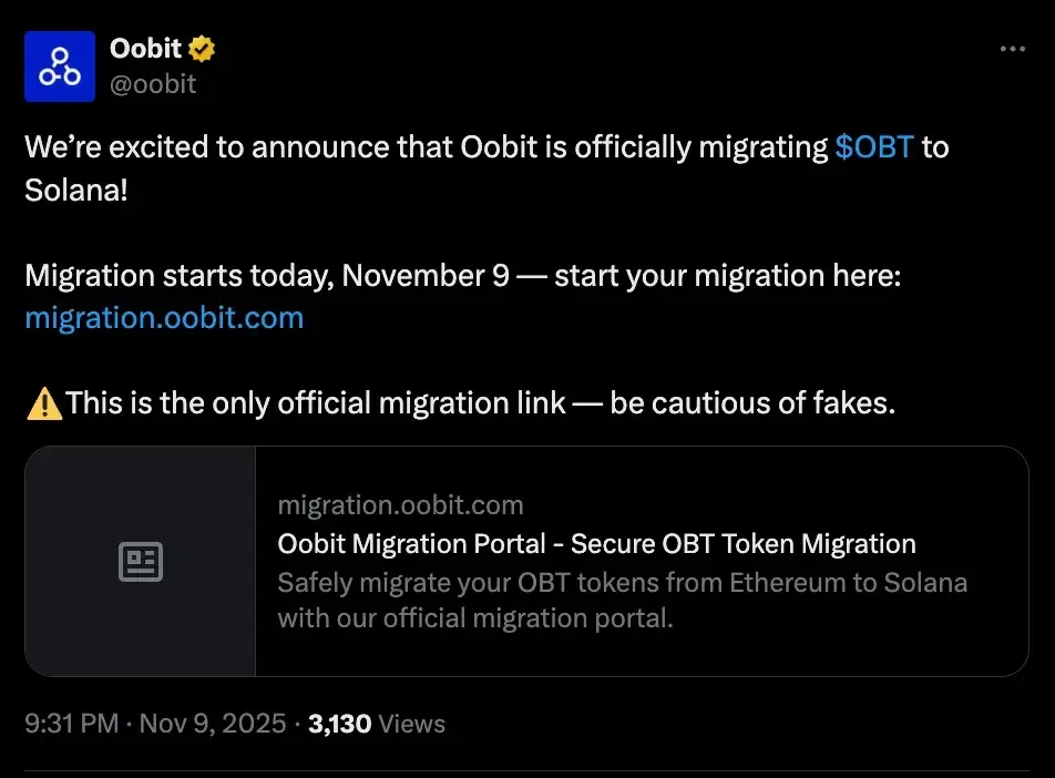 در حال حاضر، اووبیت در حال انجام فرآیند تغییر نام توکن و انتقال آن از شبکه اتریوم به سولانا است. بر اساس اعلام رسمی، انتظار میرود این فرآیند تا ۱۲ نوامبر کامل شود.