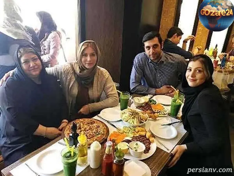 عکس فریبا نادری و خانوادهاش در یک رستوران گرفته شده است.