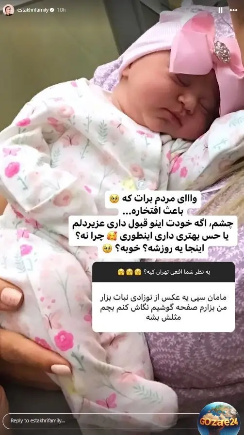 سپیده بزمیپور همسر شاهرخ استخری با استوری خندهدار و درخواست جالب، در اینستاگرام خبرساز شد و عکس نبات کوچولو با ۲ کیلو لُپ را منتشر کرد.
