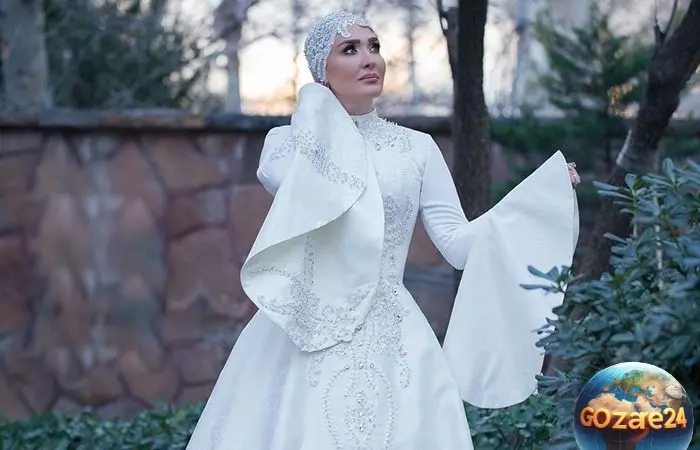 این مدل عروس با الهام از سبک سلطنتی عثمانی طراحی شده است و جلوهای باشکوه و شرقی را به نمایش میگذارد. آستینهای بلند و گشاد، گلدوزیهای پیچیده با طرحهای سنتی و تاج یا توربان پارچهای از ویژگیهای بارز آن هستند. فرم راسته و یقهی بسته، ظرافت و پوشیدگی مناسبی را فراهم میکند که با معیارهای مد اسلامی همراستا است. این لباس نمادی از ترکیب اصالت شرقی با طراحی مدرن است و برای مراسمهای سنتی و مجلل بسیار مناسب است.
