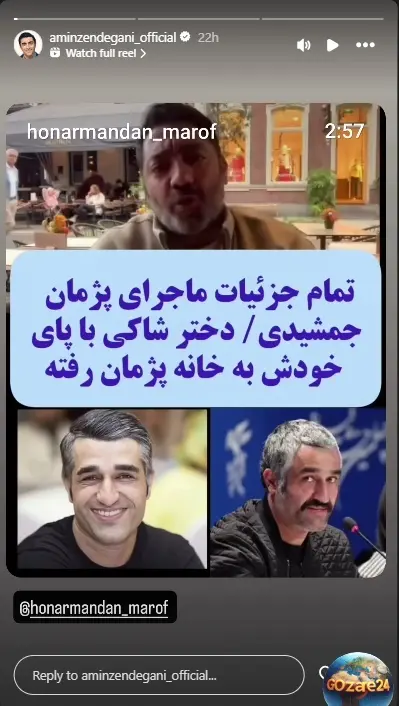ویدیویی که مشاهده کردید، مربوط به صحبتهای فردی است که ادعا میکند از جزئیات مربوط به ماجرای پژمان جمشیدی مطلع است. این ویدیو توسط امین زندگانی در فضای مجازی منتشر شده است.