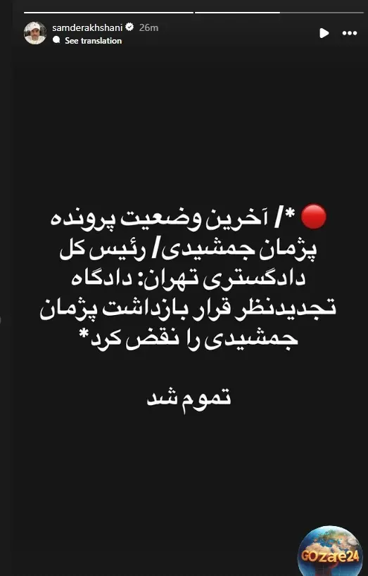 آخرین وضعیت پرونده پژمان جمشیدی از زبان سام درخشانی: تموم شد! مشاهده استوری جدید و اطلاع از جزئیات در رسانه هنر و رسانه.