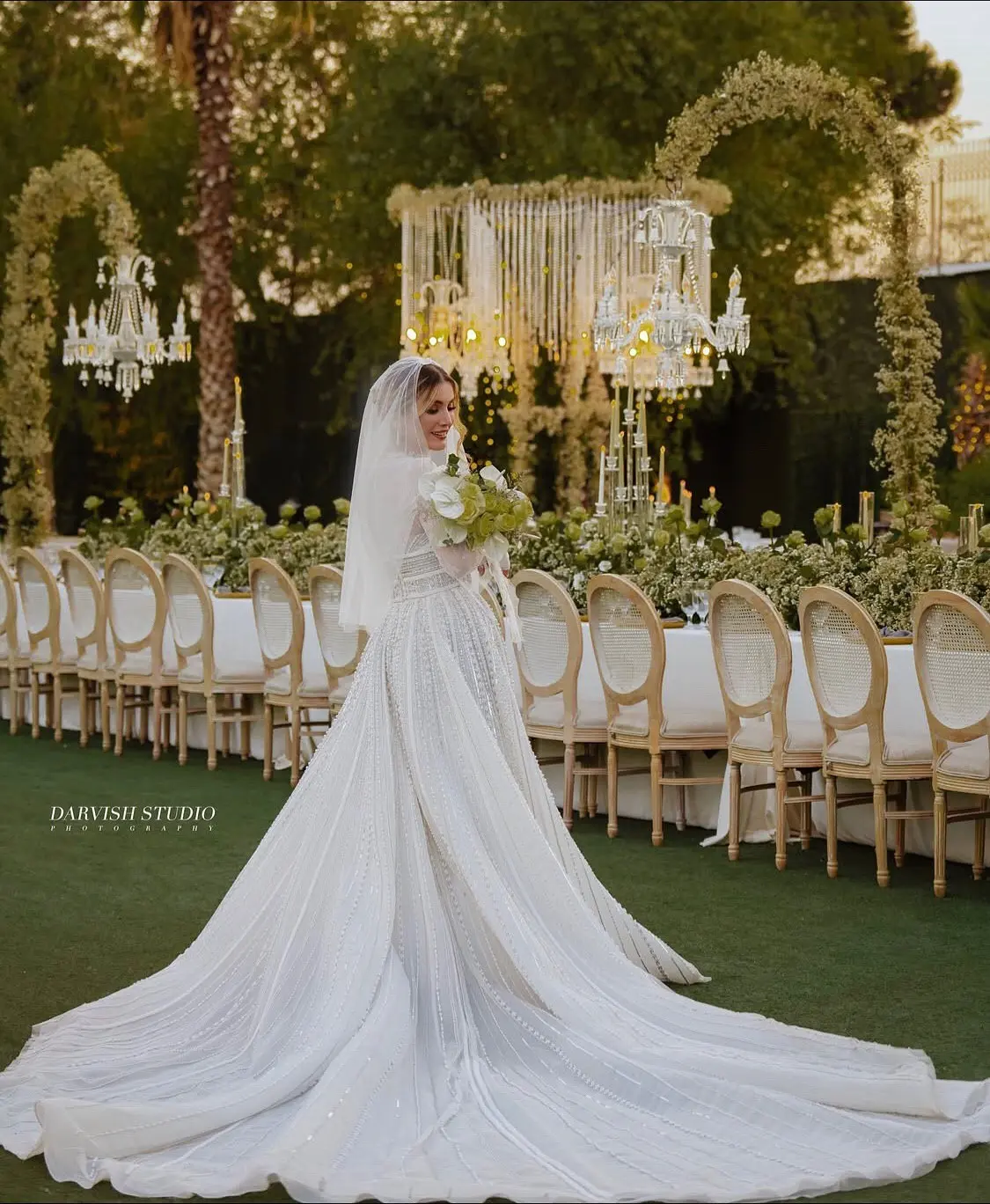 در تصاویر منتشر شده، ترکیب رنگهای سفید و صورتی ملایم دیده میشود که جو آرامشبخش و عاشقانهای را رقم زده است.