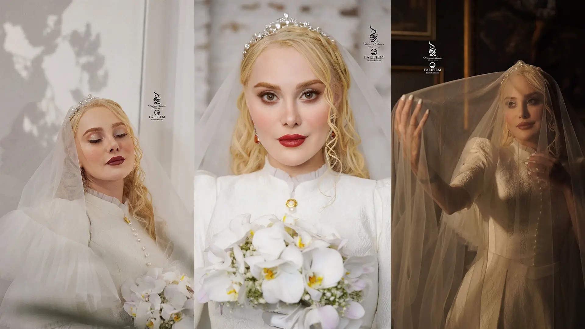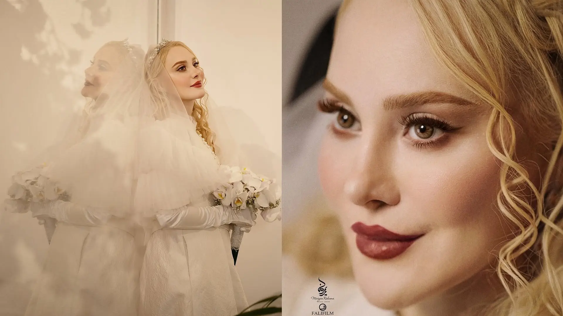 همچنین، مدل موهای او با فرم صورتش هماهنگ بوده و در کنار آن، حالت کلاسیک مناسب با نوع مراسم نیز رعایت شده است.