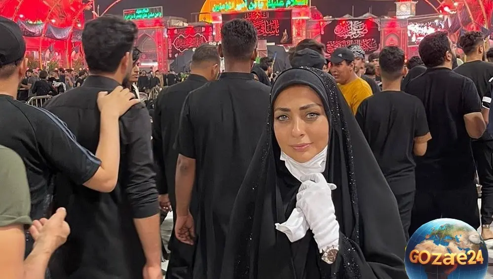 نفیسه روشن با حجاب در کنار حرم، استایل باشکوه و معنوی