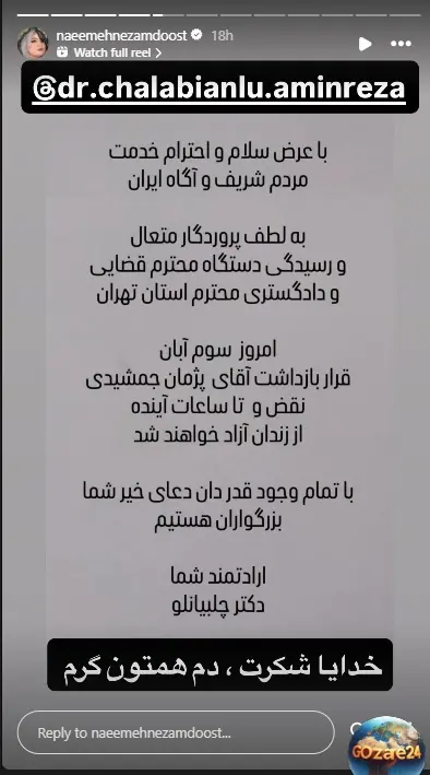 تصاویری که مشاهده کردید، مربوط به استوریهای بازیگران درباره آزادی پژمان جمشیدی است.
