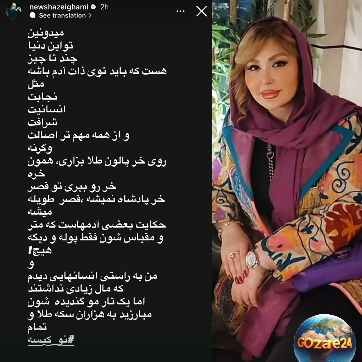 نیوشا ضیغمی در واکنش به فخر فروشیهای فریبا نادری: استوری جنجالی و هشتگ نو کیسه