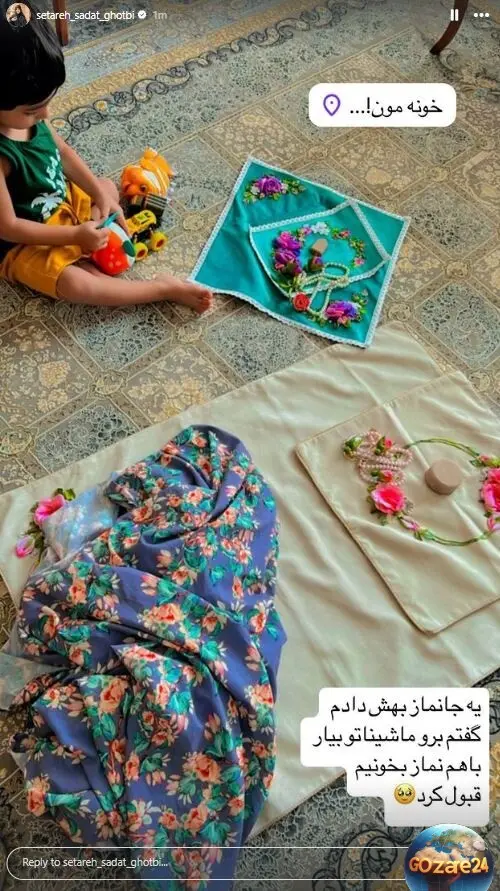 تصاویر زیبای جانماز گلدوزی شده ستاره سادات قطبی در صفحه اینستاگرام