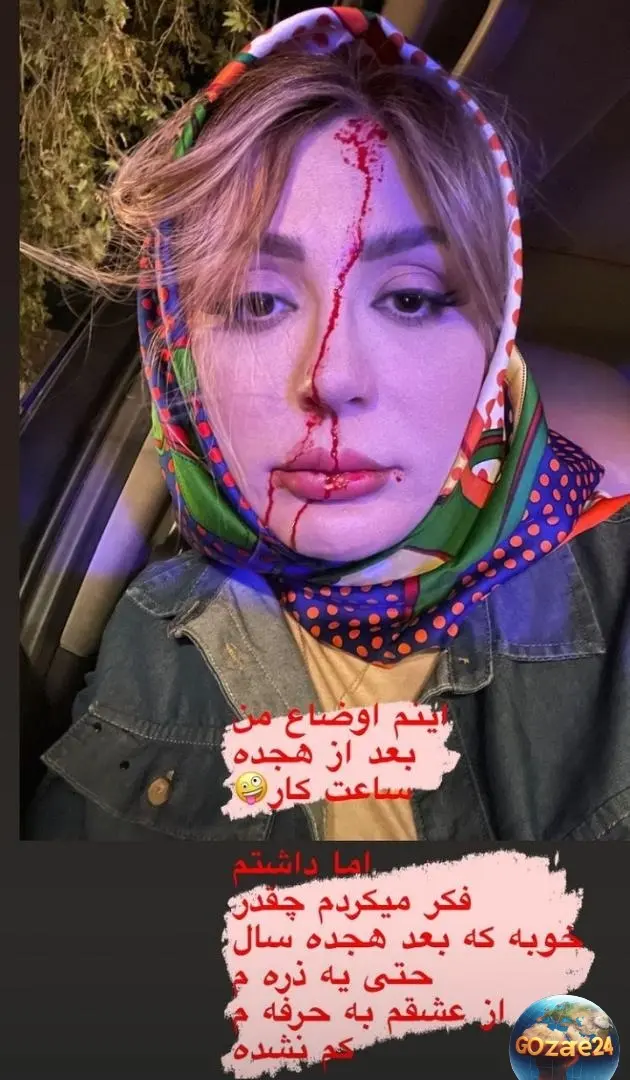 نیوشا ضیغمی با چهره خونی پس از ۱۸ ساعت کار جنجالی شد
