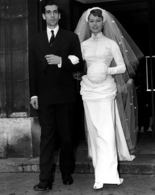 باردو با جسارتی منحصر به فرد، سه نوع لباس متفاوت بر تن کرد. در نخستین ازدواجش با روژه وادیم در سال ۱۹۵۲، پیراهنی یقهبسته و پشتباز بر تن داشت. در سومین ازدواجش با ژاک شاریر در سال ۱۹۵۹، به سراغ پیراهن چهارخانه گلدار از ژاک استرل رفت، لباسی که برای لباس عروس انتخابی غیرمتداول بود. در دومین ازدواجش با گونتر زاکس در لاسوگاس در سال ۱۹۶۶، لباس کوتاه و تابستانی سادهای بر تن داشت که بیش از هر چیز، روح بازیگوش و سرکش او را بازتاب میداد.
