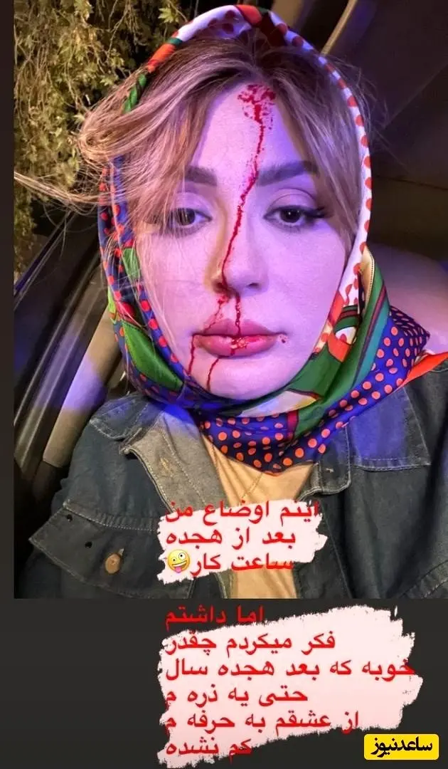 نیوشا ضیغمی پس از ۱۸ ساعت کار سخت با چهره خونی و عجیب جنجالساز شد