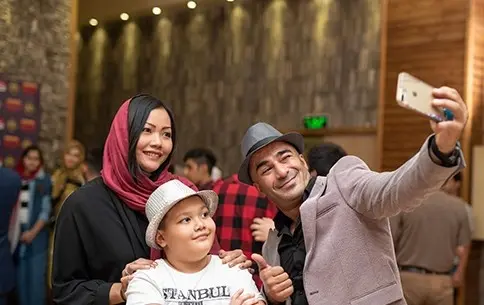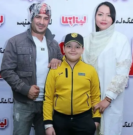 یوسف تیموری همراه با همسرش راپان و پسرخواندهاش.