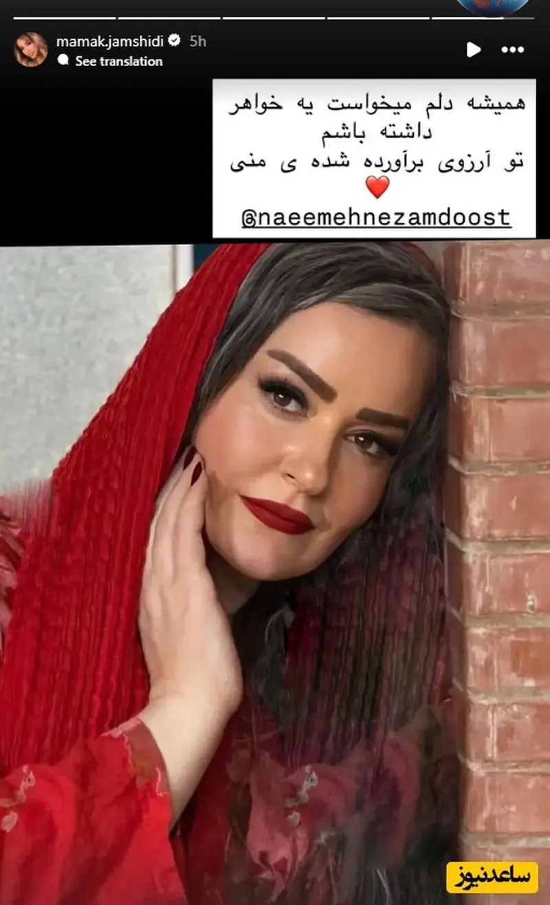 پست استوری مامک جمشیدی به منظور تقدیر و تشکر از نعیمه نظامدوست