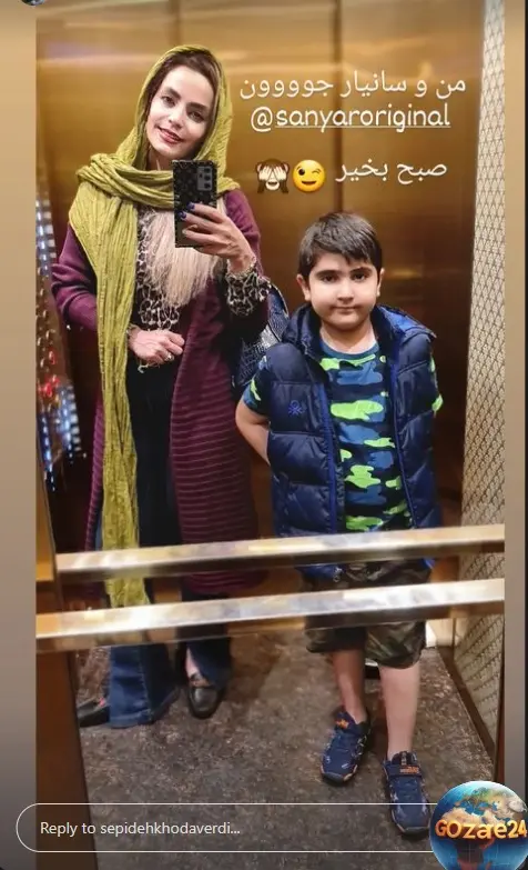 تصاویر جدید سلفی شیک و لاکچری سپیده خداوردی و سانیار در آسانسور: استایلهای خاص و جذاب!