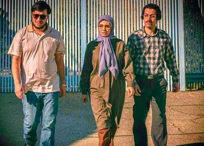مهدی زمینپرداز، جواد عزتی و لیندا کیانی در فیلم «ماجرای نیمروز» / تصویر از مجید طالبی