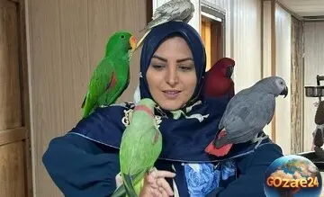 المیرا شریفی مقدم با طوطیهای رنگارنگ در برنامه زنده مهماننوازی کرد