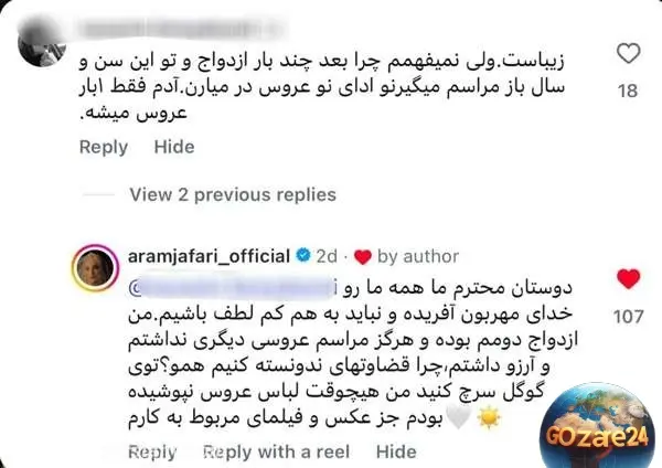 آرام جعفری: هرگز عروسی نداشتم و به شایعات پاسخ داد