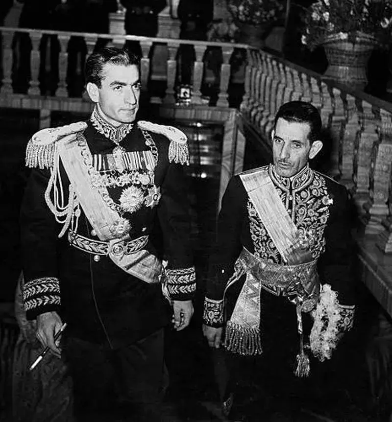 تصویر نادر از محمدرضا پهلوی در روز عروسی با ثریا اسفندیاری در کاخ مرمر تهران، لحظه ورود به مراسم دومین عروسی در سال ۱۹۵۱.