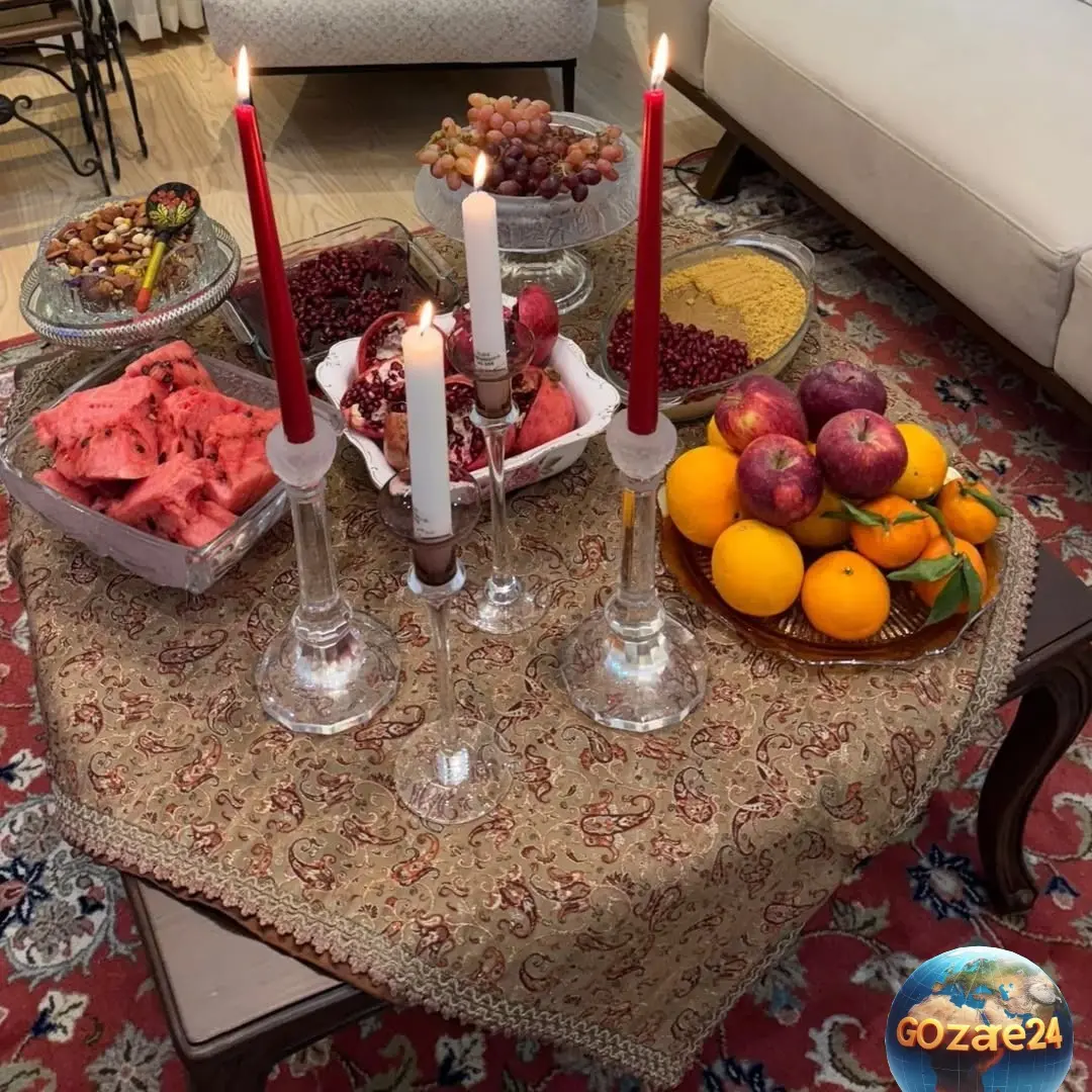 در تصاویر، فضای خانه مادر سیاوش خیرابی با حالوهوایی گرم و پر از صمیمیت به تصویر کشیده شده است. میز وسط اتاق با سفرهای سنتی و ظروفی پر از میوه، آجیل، هندوانه و انار تزئین شده است که یادآور آیینهای ایرانی مانند شب یلدا است. شمعهای روشن کنار میوههای رنگارنگ، ترکیبی از زیبایی و آرامش را ایجاد کرده و نشاندهنده سلیقهای اصیل و ایرانی است. فرش دستبافت با طرح سنتی و مبلمان ساده، فضایی دلنشین و خانوادگی را شکل دادهاند.