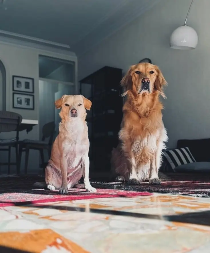 جزئیات دکوراسیون نشان میدهد که تمرکز اصلی بر راحتی و کارایی است. فرشهای رنگی، میزهای ساده و چراغهای مدرن، تعادلی میان سبک امروزی و گرمای خانگی برقرار کردهاند. حضور سگها در خانه نیز به محیط انرژی و صمیمیت بیشتری میافزاید.