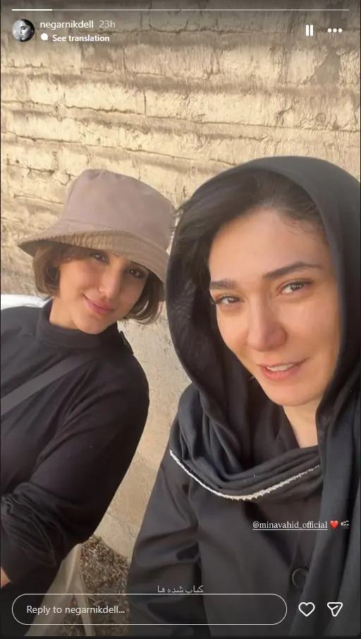 نگار نیکدل تصویری از پشت صحنه یک پروژه فیلم یا سریال منتشر کرد که در آن، او و مینا وحید در گرمای شدید باید با کاپشن بازی میکردند.