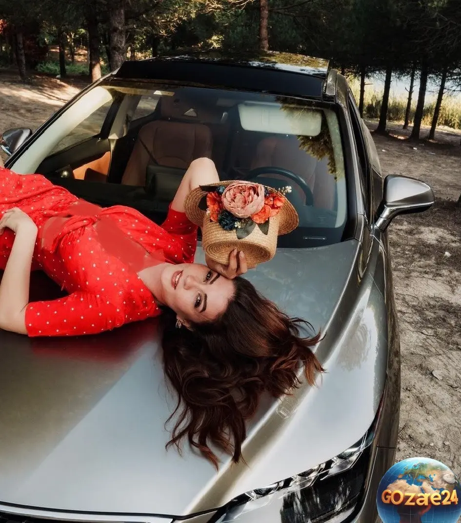 ژست دلبرانه و استایل وینتیج بورجو اوزبرک کنار خودرو لوکس در جدیدترین عکس اینستاگرامی