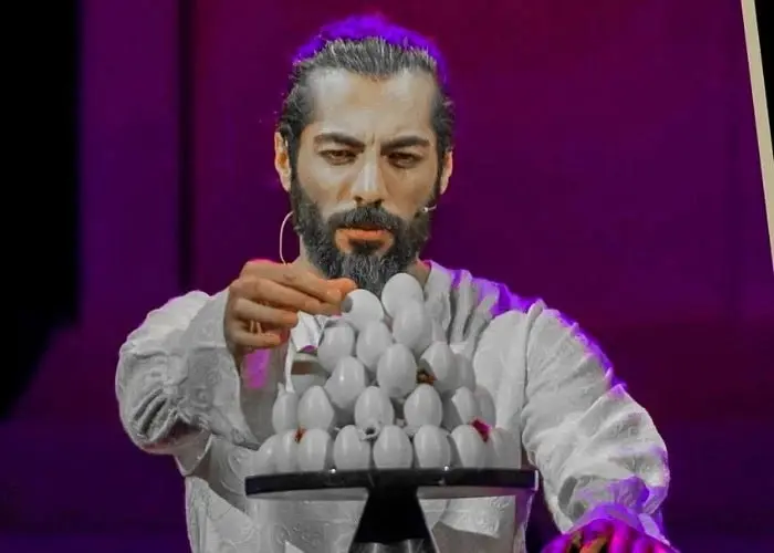نوید پورفرج در اجرای نمایش "آواز عاشقانه دختر دیوانه" حضور دارد / تصویر از رضا جاویدی