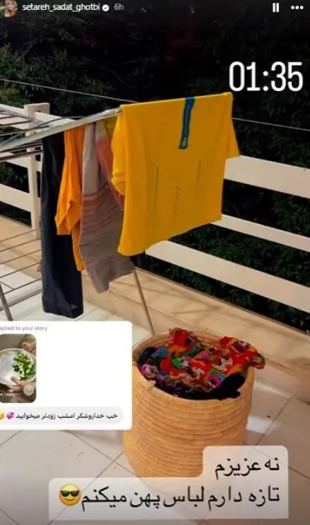 ستاره سادات قطبی در حال رختپوشیدن باحال در شب بعد از سرکار؛ لحظهای خاص در استوری اینستاگرام