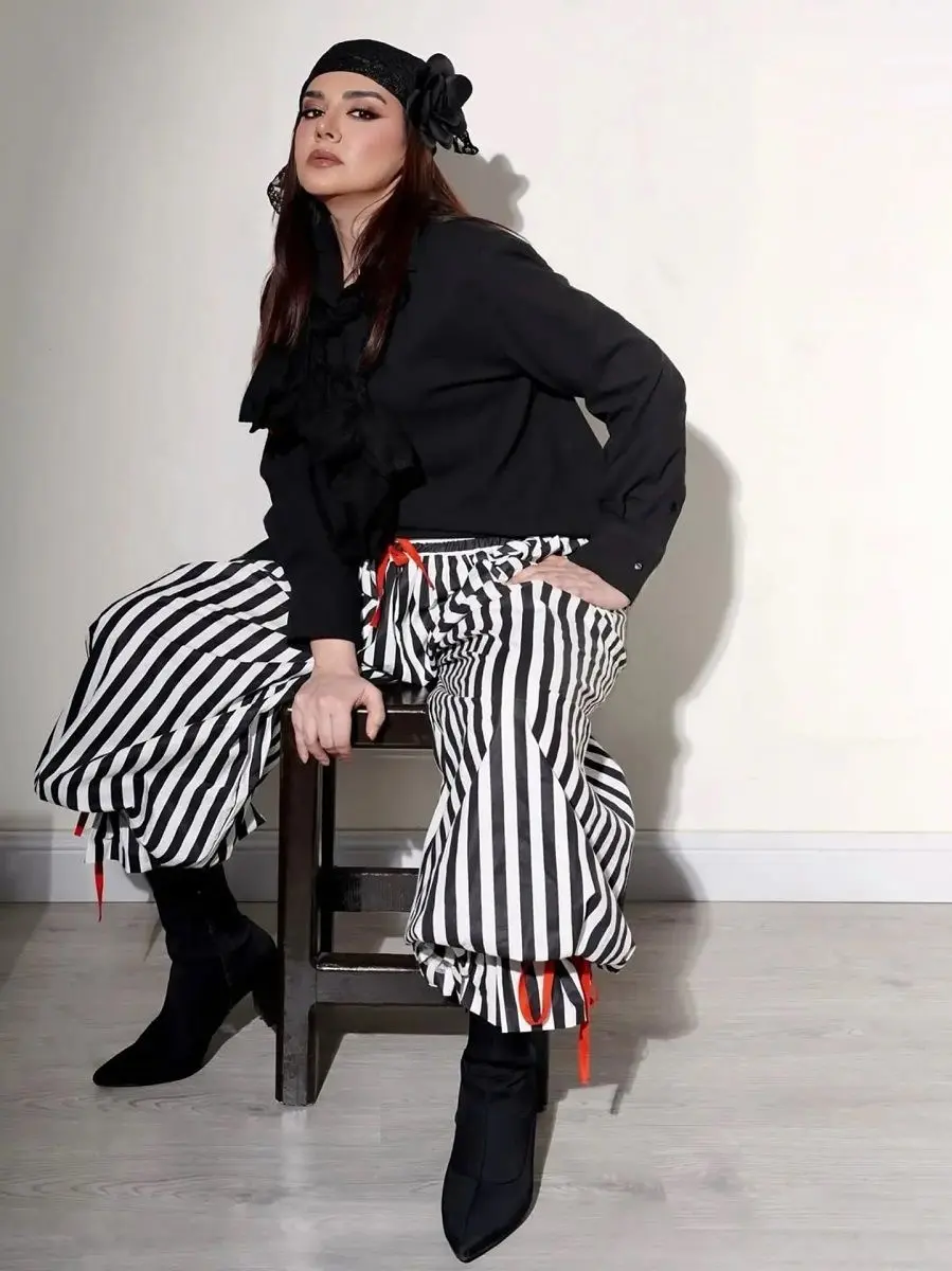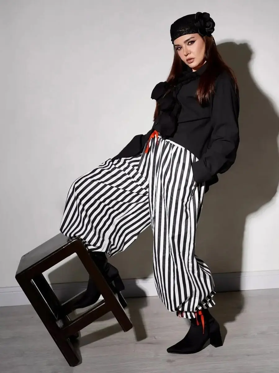 استایل متفاوت و جذاب ندا قاسمی با شلوار راهراه، شوکهکننده طرفداران و رسانهها