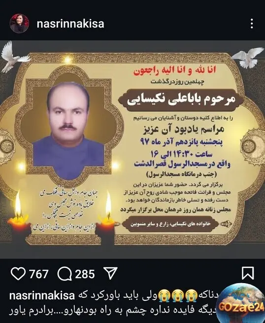 ترحیم برادر نسرین نکیسا بازیگر «یوسف پیامبر» + عکس و جزئیات