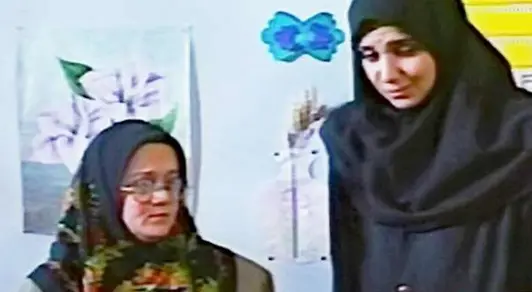 تصویر مژگان عظیمی، بازیگر نقش پسته خانم، در مدرسه مادربزرگها.