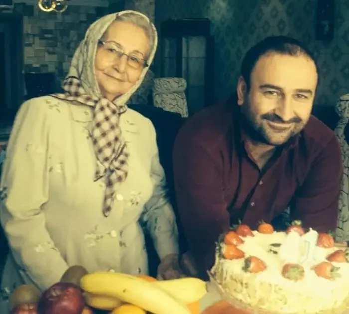 مهران احمدی در کنار مادر گرامیاش قرار دارد.