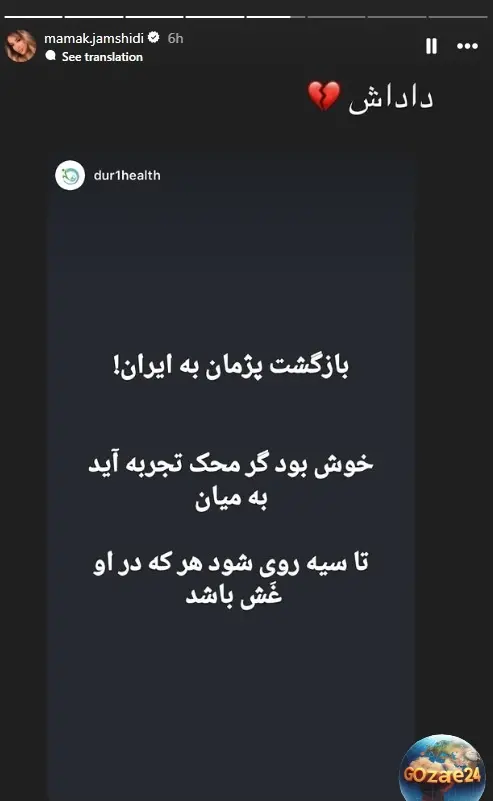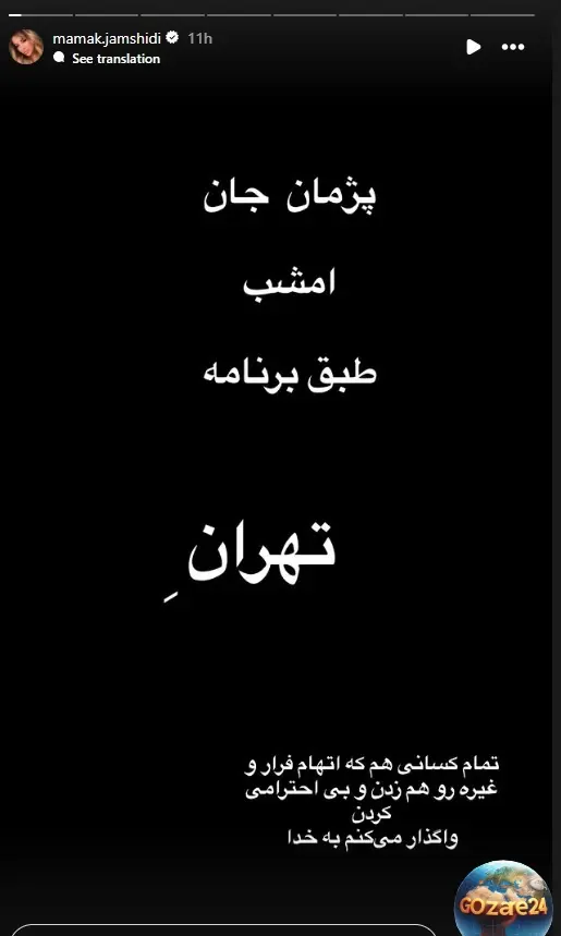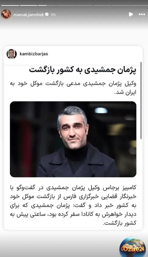 مامک جمشیدی با انتشار استوریهایی، خبر از بازگشت پژمان جمشیدی به تهران را داده است.