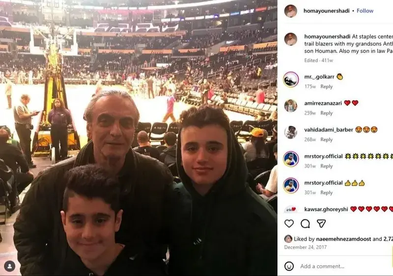 در تصویر منتشر شده توسط همایون ارشادی در اینستاگرام، او همراه با نوههایش آنتونی، مایکل، نیکولاس و همچنین پسرش هامون و پسر ناتنیاش پاوول در حال تماشای مسابقه دیده میشود.