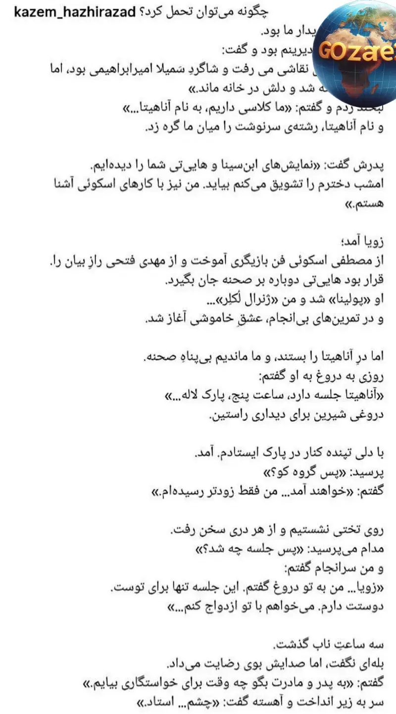 کاظم هژیرآباد داستان خواستگاری و وداع خود با زویا را منتشر کرد.