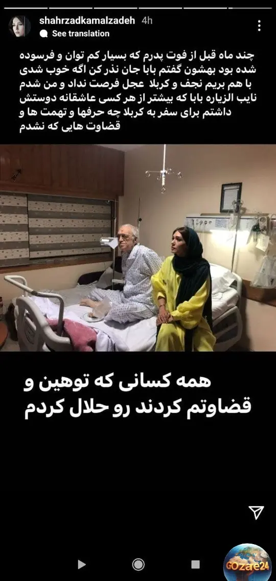 شهرزاد کمالزاده از وداع با پدر و آرزوی سفر به کربلا در استوریهای اخیر خبر داد و تصاویری جدید منتشر کرد.