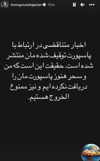 همایون شجریان، خواننده موسیقی سنتی، اعلام کرد که او و سحر دولتشاهی، بازیگر سینما، هنوز پاسپورت خود را دریافت نکردهاند و در وضعیت ممنوعالخروجی قرار دارند. این دو پس از بازگشت از یک سفر خارجی در فرودگاه امام خمینی، پاسپورتهایشان توقیف شد. مجید میراحمدی، معاون امنیتی وزارت کشور، اظهار داشت که دستور داده شده است تا پاسپورت همایون شجریان به او تحویل داده شود. در حالی که خبرگزاری ایسنا گزارش داد که پاسپورت شجریان تحویل داده شده است، اما او در استوری اینستاگرام خود این موضوع را رد کرد و نوشت: «من و سحر هنوز پاسپورت خود را دریافت نکردهایم و همچنین ممنوعالخروج هستیم.»